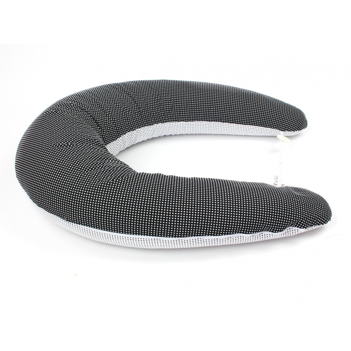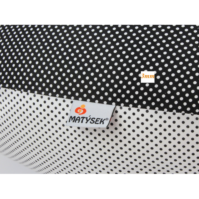 Dojčiace vankúš MAXI 205 cm + snímateľný poťah, vzor BODKA ČIERNOBIELA 3mm, 100% bavlna